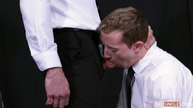 Elder Floyd has been using the lord’s name in vain, so his companion, elder Allen, tells president Roderick about his sinful ways. The two are summoned so that elder Floyd is given a proper lesson, but he has lost his trust in his mate, so the president wants them both to change their ways. The authority makes the two missionary boys kneel to swallow his cock, in hopes they learn the sinful nature of their actions. The elders follow Roderick’s indications, engaging in a fuck session that will prevent them from behaving improperly again.