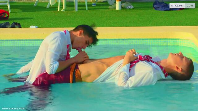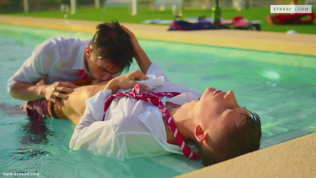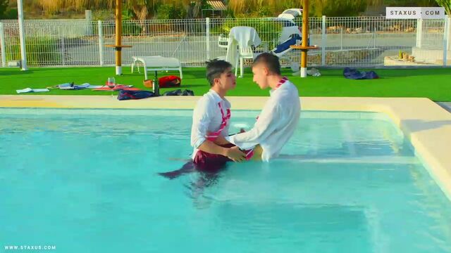 College boys Danny Delano and Nathan Luna fuck poolside - Staxus