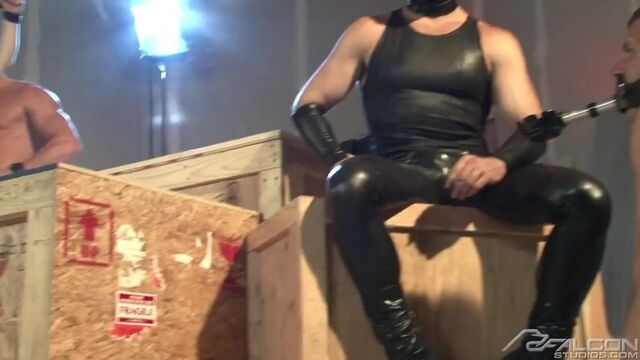 Unable to evade his pursuers any longer, Johnny Gunn is captured and thrown blindly into what will for him soon turn into a den of iniquity. Bewildered and frightened he finds himself surrounded by his two masked assailants and three other men who are strapped up and bound. The mystery men release the fettered captives -- Tristan Jaxx, Tyler Saint and Derrek Diamond -- to sick 'em on the hapless Johnny whose fears of becoming the target of their frenzied manlust is quickly realized. The ungodly trio of studs circle their trapped prey and one after the other penetrate Johnny from both ends, fucking and getting sucked off. Tristan and Tyler's hedonistic hunger grows more savage as they stuff their cocks simultaneously into Johnny's butthole for a double penetration. The action grows sweaty and finally climaxes with the brutish trinity showeringââ¬Ëthe worked-over Johnny with their cum, marking him as their rightful booty.