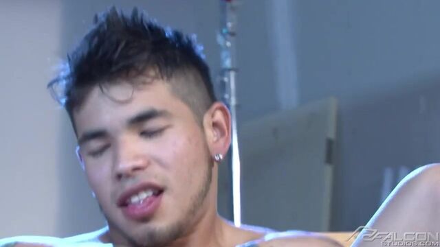 Draven Torres is resting, his ankle chained to a pole, when a naked Roman Wright gives him a kiss. The big burly intruder starts to suck on Draven's dick, running his lips and tongue up and down the shaft, savoring the salty sweetness of the tender flesh. Draven is completely aroused and quickly returns the lusty ministrations by nursing on Roman's thick staff. He continues to suckle the super-sized cock as Roman rims his sweet asshole. Draven then straddles his buddy and plants himself atop his cock and bucks up and down like a wild bronco. They get up and Roman continues to piledrive Draven's chute, grinding his hips as he pumps his dick in and out. Then it's back down on the mattress with Draven's legs spread wide and Roman rooting himself as far deep and snug inside the hole. The two men finish themselves off, jerking their cocks until they both explode with bursts of milky spooge.