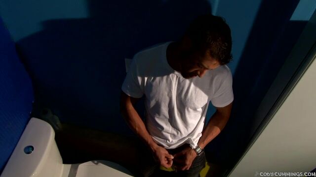 - Description: There's a man in the bathroom stall, letting sexual images run wild through his head. His cock is hardening as the sensuous visions grow more clear. Another man crouches outside the stall, peering in through a fortuitous hole. The man inside is Cody Cummings and he's slowly lowering his jeans to expose his dong. He knows Connor Maguire is salivating while he peeps. Soon Connor's own dick is firm. He begins to stroke it as Cody moves closer to the hole. The luscious boner is pushed through so Connor can do with it as he may. Connor slowly wraps his lips around it, bobbing his head and sucking. Cody works his body into a thrusting motion. Connor takes the fat cock deep, experiencing every throbbing inch. Cody removes his shirt and runs his hands over the chiseled contour of his perfectly toned chest and abs. Connor is standing now, jacking his dick and Cody's together. He spits into his handful of man meat to add warm lubrication. Connor strokes both himself and the stranger behind the wall for another moment before returning to his knees for more oral indulgence. He wants this mysterious man's hot load on his face and chest. Watch this anonymous encounter unfold and explode in a climax of glorious ecstasy. Enjoy!