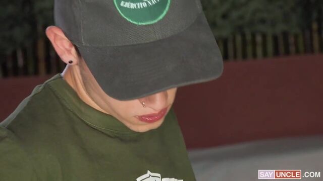 Every once in a while, young privates are caught wandering around. That’s the case of Loick, who is seen playing in the woods by his superior Jake during his patrol shift. Now Loick is in trouble, and Jake is eager to haze him. Yet, Loick is begging for it as he observes his superior’s cock while peeing, so Jake takes him to the barrack to teach him a lesson. Inside, Loick swallows Jake’s cock and gets the ass-pounding of his life.