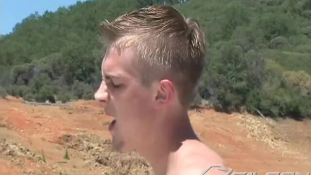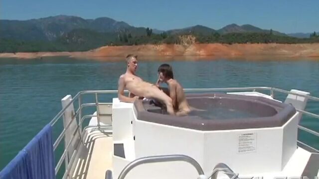 Camden Christenson and Atorian Tomes slide bare-assed into the water and splash about like frisky otters before they dive into more serious sexplay. Camden lays out and Atorian begins sucking on his cock, slavishly running his tongue up, down and all around the shaft before swallowing it whole. Camden takes his turn feeding on his buddy's tool, wrapping his arm around Atorian's hips to draw his groin up tight close to his face. Then Atorian turns around and leans forward, bracing himself as Camden piledrives his dick up his hole. With each thrust, he plunges himself deeper and deeper inside. Both of them are sighing, gasping, almost squealing. Atorian begs Camden to keep fucking him and he does until he cums all over his partner's chest. Atorian follows up by jerking himself off and spritzing Camden with his warm spooge.
