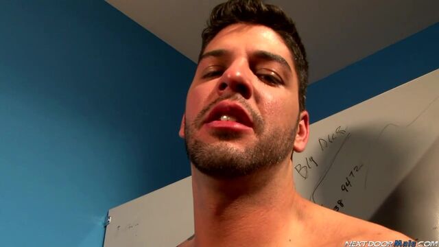 Anthony Russo is one sexy Italian stud, and he is on full display in this locker room solo. Bulging out of his pants, he slowly rubs himself down as he gets himself worked up. Getting ever harder, he begins to stroke it standing up, then turns to show his sculpted ass as he fucks the glory with his shimmering penis going in and out. Now that he's really worked up, he leans back against the stall and sits down on the floor to finish off this whack strike, talking into the camera and shooting a messy load all over his hands. Luckily the shower is right there, but that's a whole other scene for a whole 'nother time.Enjoy!