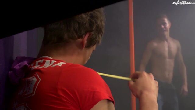 We’re not exactly sure if Daniel Brooks has ever had experience of performing as a go-go boy before, but given his display here in the company of Nick Roth it’s perhaps a career sideline that he might like to consider if he wants to earn a little extra cash to buy a car or pay his way through college. After all, we defy anyone not to be immediately smitten with this cute, bubble-butted little minx, and indeed it isn’t many minutes before Roth has stepped up to the stage so as to feast on the lad’s rock hard shaft and to savour the prospect of having that same meaty pole find its way into his tight ass! An objective that is ultimately realised with remarkable ease, it must be said, as Roth’s horny man-cunt opens up to Brooks’ raw advances like a whore on heat. This is one eager hole that’s unquestionably accustomed to a regular hard invasion from rampant man-meat, and it’s no real surprise that the coupling is soon taking the inevitable toll on Roth’s balls as he dumps a fine wad of juice all over his front. In response, Brooks jerks the sticky fruits of his own loins into Roth’s groin; leaving the boys to conclude their sordid little encounter with a lingering, open-mouthed smooch.