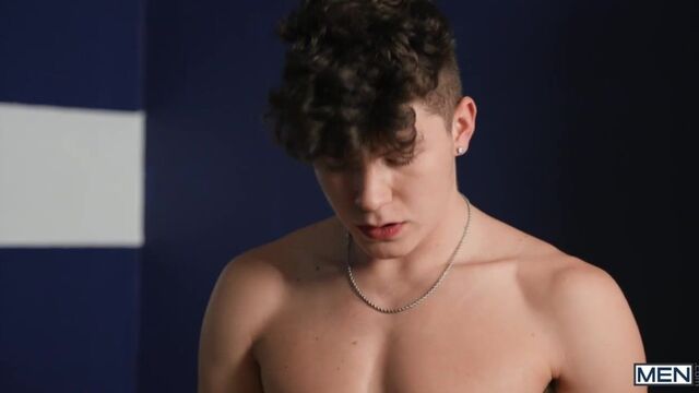The other frat brothers are out, so horny Drake Von wants to take the chance to fuck his roommate, Damian Night, again, but Damian wants to study. Drake humps Damian's booty while the bottom hits the books, at least until Drake cums all over them! Drake's still horny and Damian could use a break, so he sucks the top's big cock, then gets his hole filled up. Damian rides the top and gets fucked spoon before Drake sucks the horny bottom and pounds him in doggystyle. Damian blows his load on Drake's chest, then licks up the top's cum.