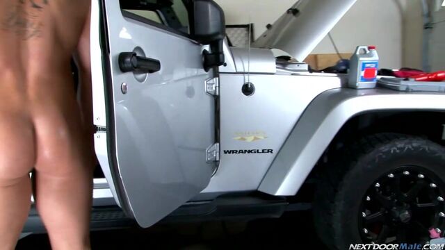 James Huntsman is tuning up his ride one afternoon in the garage as the autumn afternoon passes by outside. Sliding underneath the chassis, he finds a discarded phone sex ad under one of the tires. Being a virile young lad in the prime of his sexual potency, this is pretty much all it takes to give him a semi-chubby in his pants. So he sets aside his work for a moment and unzips his coveralls to reveal his rippling chest, chiseled abs and rock hard cock. Leaning back in the passenger side of the Jeep, he spreads his legs and spreads his fingers around his cock like a joystick, working it up and down, back and forth like a piston beating and firing on all cylinders, and when he cums all over the floor, he shoots with the ignition power of 400 horses under the hood. Well, when you are driven you must satisfy the urge. Enjoy!