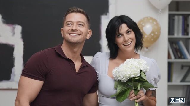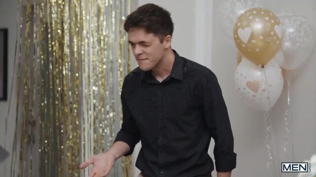Johnny Donovan is about to get married... and his best man, Dom King, can't let that happen. He puts together a special slideshow of memories of Johnny and his fiancee for the engagement party, and sneaks in a video of Johnny giving him a BJ, because he wants his best friend all to himself. After the fiancee storms out, Johnny sucks Dom, then strips down to his jock and rides the top. Dom pounds his buddy against the wall, then sucks his cock and rims his hole. The bottom cums as Dom pounds him in missionary, and the top celebrates his victory by blowing his load all over Johnny's ass.