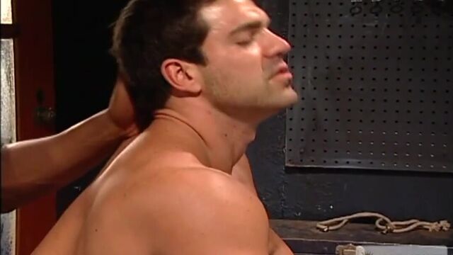 Occasionally a technician reports to the warehouse to check the wiring or begin some much needed repairs. When Hot House Exclusive Vince Ferelli shows up he has no idea what goes on in the shadows until Damien Holt enters and whips out his giant cock. The horny bodybuilder drops to his knees and sucks on Holt's cock then strips down and kicks back for some service. Holt flips the chiseled workman over and plows his ass until they blow explode.