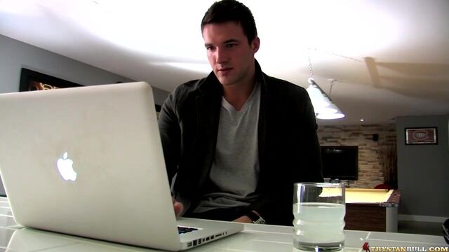 Trystan Bull is home from a long day at work, wanting nothing more than a little R&R. His wish comes true when he walks through the door to discover his wife has run an errand and will be several hours. Trystan immediately hops around to the bar to mix a drink, and celebrating his short stretch of freedom, begins to slowly massage his cock from its slumber. Unzipping his pants and watching a porn on his laptop at the bar, Trystan decides to make an event of it, and so he strips down and makes his way over to the couch, where he pops in a hidden disc from his secret stash hiding place. Now fully experiencing his porn in HD on the big screen, Trystan sets into easing his tension as he strokes his rock hard cock into submission, lotion and lathered, before finally cumming all over himself on the sofa. Stress relieved, libido sated, and still time enough for another drink. Call it the perfect evening alone.Enjoy!