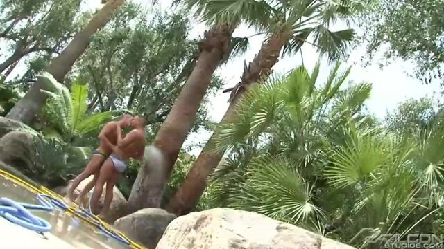 Falcon Exclusive couple Aden and Jordan Jaric continue their narrative finding more romance under the sheltering canopy of lush palm trees. They drench each other with cool water; their tight briefs get soaking wet exaggerating their baskets. They look huge, naughty and delicious. Aden reaches inside and pulls Jordanââ¬â¢s cock out to suck on it. Then he tongue fucks the tasty cleft deep between those peachy asscheeks. Jordan responds by paying oral homage to Adenââ¬â¢s majestic staff, then probes his hole with the tip of his flickering tongue. Aden gets behind his partner and screws his asscrack, each powerful thrust an affirmation of his enduring devotion. The guys switch it up again so Jordan can take his turn plowing Adenââ¬â¢s love tunnel. They both finally climax, drenching each other with steamy manjuice.