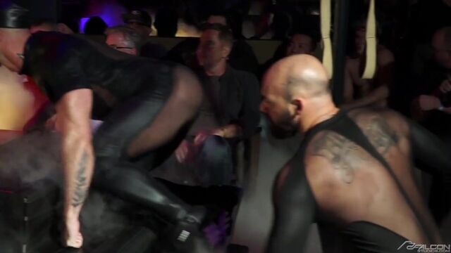 Nob Hill co-owner Adam Killian may be selling his legendary theatre but he's far from retiring from sex. In fact, now that he's been given the green light for his monster-bang finale he's in overdrive! The night kicks off with a stunning XXX strip tease curated by San Francisco's legendary House of More! as the Nob Hill dancers work their cocks, and the audience, into frenzy. The lights dim and Adam reveals his costars; Max Euro and Jessie Colter. After a brief erotic dance all three superstars whip out their huge cocks and it's on - no hole is left unfilled as they take turns being spit roasted, each man being fed and bred by the other two. Jessie is the first one to be DP'd as he sits on Max's huge cock and Adam slips his fat one inside - the crowd cheers as Jessie screams in ecstasy. The cock sucking and fucking continues until it's Adam's turn to get both giant dicks up his ass. Max and Jessie fuck him raw and pull out as the crowd takes photos and gropes their hard bulges. Finally Max is the one to get both cocks up his ass and it proves to be too much - for him and the crowd. Everyone needs to get off. Each muscular stud takes turns feeding the other two their thick loads. Now THAT is going outwith a Bang!
