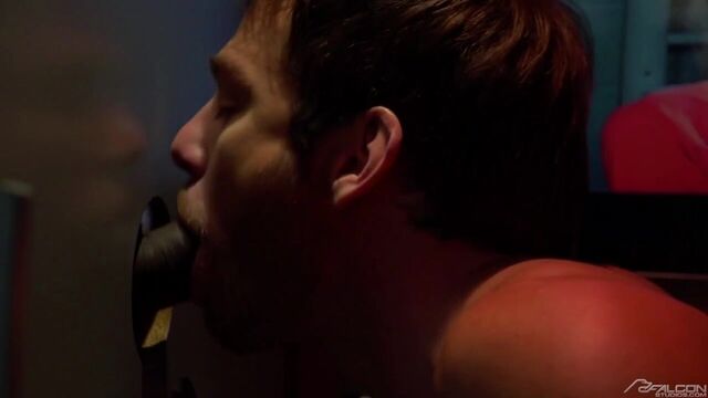 Well hung businessman Timarrie Baker unexpectedly finds himself with some time to kill so he visits his favorite cruise spot The Nob Hill Theatre. After a flirtatious exchange with Max Adonis at the counter Timarrie heads downstairs for some head. Adam Killian lures Timarrie into the booth next to his and Timarrie whips out his 11' monster cock. Before he can stick it through the hole Leo Forte catches his partner Adam up to no good and orders him out of the booth. Thankfully Max is so horny he takes his break and ventures downstairs just in time to suck Timarrie's thick cock as it emerges from the glory hole. Max proves to be an expert cocksucker, swallowing the giant tool to the base and gagging as it grows to rock-hard perfection in his throat. Timarrie strips out of his business suit falls to his knees to suck Max's cock and balls through the hole while he jerks on his huge cock. Timarrie and Max know they have to take it to the next level so they sneak into a private play space to fuck. Timarrie eats Max's ass then shoves his dick in his ass and pummels him with all 11 inches. Timarrie pulls round jerks a load into Max's hungry mouth and sends him back to work, dripping in cum.