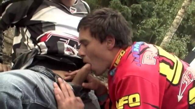 Dominik takes young Nick out for a ride, and he gets a lot more riding done off the bike than on it!! Dominik’s huge dick protrudes from his outfit, and the two horny twinks take things into the tent to continue the hardcore ass pounding that Dominik has in store for the new guy. Smooth bodies tense and flex against each other as stiff dicks are worked into tight holes, the two twinks can’t get enough of each other, the creamy juice flows from aching dicks, spreading the spunk and filling the tent with the smell of pure bareback fucking!!