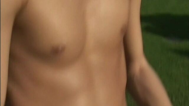 A nude sunbather is disturbed by one of his mates in the best way possible in the next scene. These two are both tall and dark haired, with slim, boyish bodies, and great cocks. They sixty-nine on the lawn, until curly bends his mate in two to taste and finger his tight boy hole. This crack is just ripe for fucking, and curly gives it good, shagging doggy style with his bare meat.