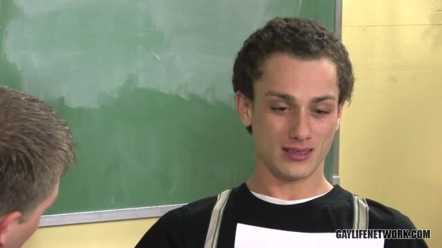 Student Phillip Ashton isn't very good at tests or quizzes, but he's great at oral reports. The young teach Tyler Dawsen is obsessed with his student's little twinky body and sweet ass. Finally he gets a shot to give this guy a whirl. The student has a big long dick that's just aching to be sucked. In return for a good grade, a cock sucking is definitely in order. This scene features crazy action against the black board as well as on the teacher's desk. What more could you want from these two hot horny studs'