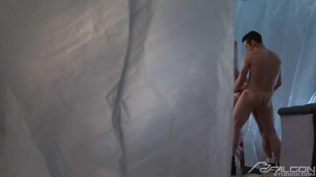 Behind a cellophane curtain, Dean Tucker is getting screwed up the ass with a mechanical dildo burrowing deep into his asshole. Brock Armstrong watches the skewered-man-exhibit before he becomes part of the show. He shoves his cock into Deanââ¬â¢s mouth and gets a mind-blowing blowjob. Then they move onto a couch where Brock bends over so Dean can jab his tongue into his hole. Soon theyââ¬â¢re making out fiercely and Brock starts to fingerfuck Deanââ¬â¢s ass and suck his dick. Then theyââ¬â¢re up again and Dean jams Brockââ¬â¢s ass with his hot poker. Another change-up and Dean jerks off while Brock fucks his tight hole. Dean shoots his wad across his hairy belly. Brock follows suit and jacks himself off before they drown each other with kisses.