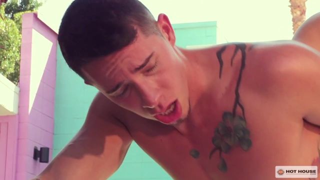 Nic Sahara is checking out the scene at the pool of the resort when he comes across horny stud, Vincent O'Reilly. Nic wastes no time as he walks over to Vincent to feed the waiting stranger his hard cock. Nic works fast and straddles a lounge chair to face fuck Vincent hard, gagging his mouth with his big uncut cock. Nic can't get enough of the ripped hunk deepthroating his rod and bends Vincent over to inspect his hole. He slips his fingers into Vincent's ready ass, teasing the stud until he's ready to give Vincent something more. Vincent braces himself on a palm tree as Nic slides his thick, bare hard-on deep into Vincent's slick hole. Nic starts out slow, then picks up the pace as Vincent moans from the intense bareback pounding that Nic is delivering. Vincent loves every inch of Nic inside him and moves to sit on Nic's hard cock. Vincent rides, keeping both of them on the brink until neither hunk can hold off any longer. Both hung studs let loose and shoot their loads all over each other's panting, hard bodies. Nic isn't quite done yet and scoops up their cum to lube his still-hard cock before shoving it back into Vincent's ass to feel the inside of his hole one last time.