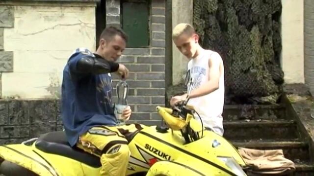 Johan pulls up alongside blonde boy Alan after a ride through the forest, crying out to get his famous dick into some hot tight ass. Pulling Alan onto his quad bike, they kiss and lick each other, tasting their hot young hairless bodies, rubbing the rock hard abs and working down to stiff dicks. Opening up Alan, Johan sticks his tongue deep into his bottom boy, getting it slick and ready for his throbbing dick to start working its entire length into him. Bending over and jerking him at the same time, both beauties build up their orgasms together, and the cum explosions will definitely make you join in the cumfest!!