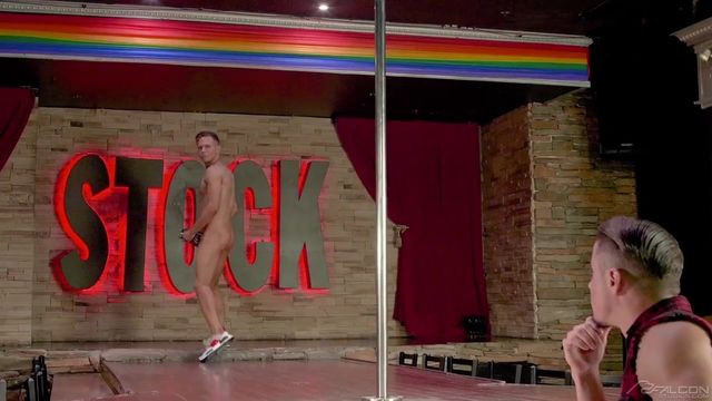 Skyy Knox is alone in Montreal and heads down to Stock Bar to check out the dancers. He's happy to find Ethan Chase dancing with a hard-on and gets on stage to feed Ethan his money. After the performance, Ethan joins Skyy for some after-hours fun when Ethan gives Skyy the private show of his life. Ethan can't wait to show off his skills at working a different kind of pole and gets down to take Skyy's giant, uncut cock down his throat. Skyy face fucks the dancer until he can no longer hold off on his curiosity and sucks Ethan's big dick as the two 69. That's all it takes for Skyy to cave to his cravings and he hops on to ride Ethan. Ethan pounds hard, opening Skyy up with each thrust from his massive cock. Ethan loves fucking Skyy but now he wants his turn with feeling a nice dick inside him. He bends over to take every inch of Skyy as the hung stud plows his eager ass. The horny studs continue flip-fucking on the stripper stage, opening each other up and getting all the dick they can take. With Ethan still inside his ass, Skyy lets loose and blasts his load all over his ripped abs. Ethan is quick to follow and adds his thick ropes to the mix.