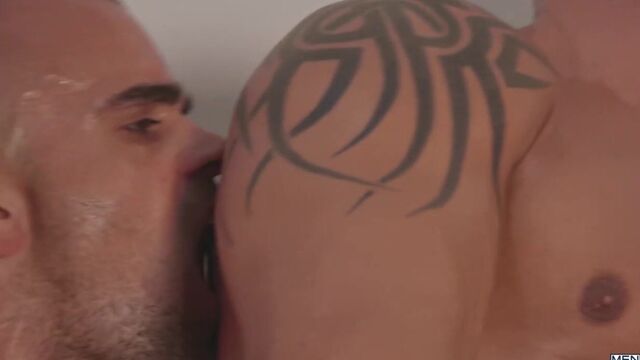 Red couch anal fucking with Damien Crosse and Goran - The Gay Office