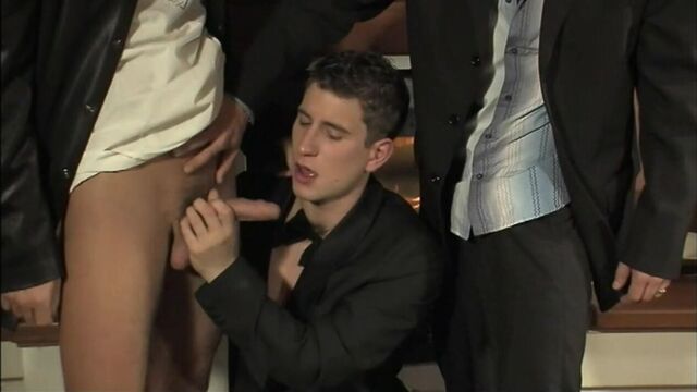 Suited Threesome!! Gang leaders Johan and Rick take Nik and get as much out of his smooth rippling body as they can get. Both fucking Nik across a table in great positions and getting their big cocks as deep inside him as possible, they all shoot buckets of cum on ass and each other!!