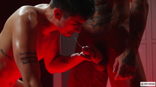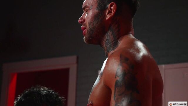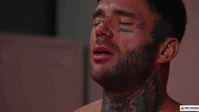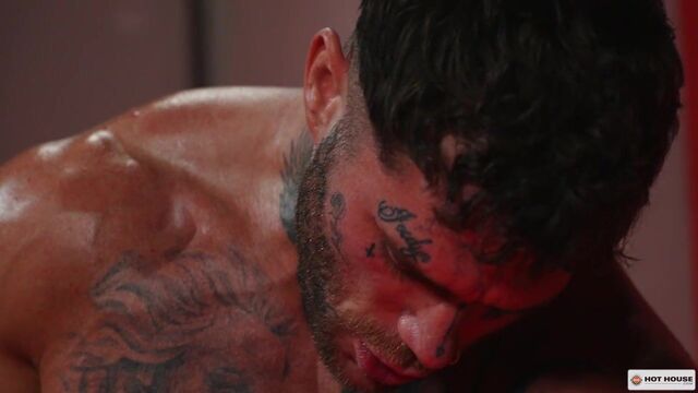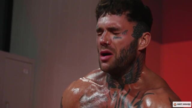 Muscle stud Joel Hart always prefers to go to the gym late at night when no one is around to catch him fucking random men in the locker room. Tonight's conquest is Kane Fox. Freshly showered, Kane begins the anonymous public hookup by climbing on top of Joel and making out with him before dropping down and letting the tattooed athlete spend some time rimming his inviting hole. With his big dick throbbing hard, a sweaty Joel begins thrusting himself into Kane's open throat and wet hole. Sounds of the two jocks' skin slapping together flood the vacant changing room until Joel delivers his final bareback pumps. He pulls out to unload his uncut wood on Kane's smooth cheeks right after Kane covers the floor in his own creamy nut.