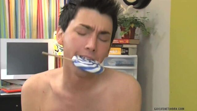 The hardcore scene between Colby London and Skyelr Bleu starts with them sucking on a lollipop and resting in bed. The sugary treat is big and colorful and all that licking and sucking turns them on to the point that a good hardcore fuck is inevitable. Colby is quite the cocksucker and his oral skills are very much appreciated by Skyelr, a top twink that loves to fuck a tight ass. The BJ gets him to that place and the anal fucking isn't far behind. The doggy style is particularly hot since much of it is filmed from behind with a perfect view of the anal entrance.