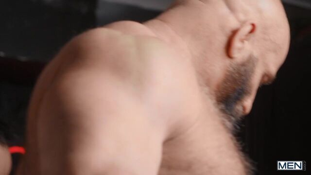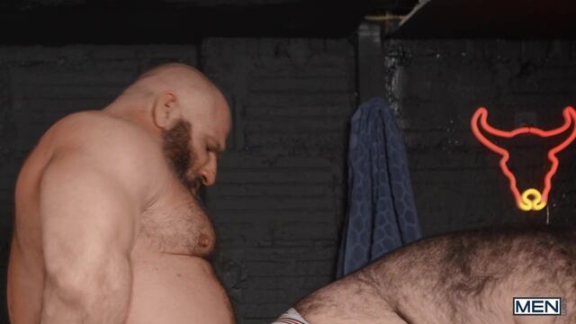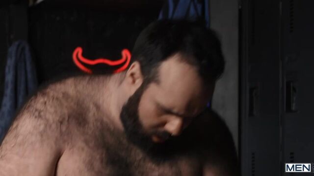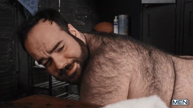 Bearded rugby bears Jay Cub and Mark Vallant talk about their favorite plays as they get changed in the locker room after the game. Mark smacks Jay's big ass and Jay admires Mark's bulge. When the bottom gets down on all fours to pick up something he dropped, Mark drops his shorts and fucks him doggystyle! Jay loves taking his hairy bro's big dick, and sucks Mark before the top rims him. Mark fucks the bottom in missionary on the bench then up against the wall, and Jay cums as he rides the top, then sucks out Mark's load.