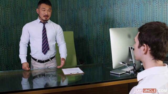 Dakota is interviewing for a job with hiring manager Zen who, after going over his curriculum, realizes that Dakota could be a very good fit. Dakota believes he is perfectly qualified for this position and is willing to demonstrate that he has that extra quality that can land him the job, so he gets on his knees and starts sucking his future boss’ cock!