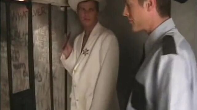 After Daisy traps Deputy Penis and breaks Uncle Jizzy from his cell, she returns to the jail cell to watch Boss Cock and Roscoe walk into her trap. The jail is empty, although Uncle Jizzy is lying on the ground in his cell, handcuffed to the toilet. Boss Cock and Roscoe enter the room and notice that the Deputy is missing. They find a half-used bottle of lube and decide to not let it go to waste. Boss Cock sucks Roscoe's huge, hard cock and Roscoe returns the favor until The Supervisor is begging the Sherriff to fuck him. Roscoe obliges, ramming his hard throbbing cock into his dandy boss's butt, smacking his balls against Boss Cock's ass cheeks. The cum shots are amazing! Boss Cock shoots all over his stomach and chest. Roscoe unleashes his own juice all over his boss, soaking his stomach in one huge spurt after another.