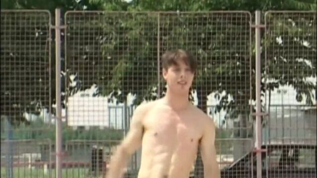 After a game of volleyball it's time for a shower. Two of the lads pair off for a suck session under the spray, one of them massively hung, his cock-greedy mate unable to get the whole meat into his hungry young mouth. The handsome top lad almost rips his mate in two as he shafts him with this monster meat, its bare inches pushing deep into his young butt hole. The young cum junkie eats every drop from his buddy's big cock.