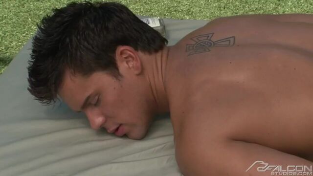 Roman Heart unwinds with a sensual pampering by the clubââ¬â¢s hunky masseur. Tyler Saint knows how to soothe his client, kneading his flesh with a firm touch; his hands travelling up and down his body. Supposedly to erase any tension, the massage ends up stimulatiing both men. The therapistââ¬â¢s tongue soon works its own magic as it hungrily probes his customerââ¬â¢s asscrack. Tyler then starts sucking his cock and Roman can barely lay still. Feeling agitated, he wants more of Tyler than just hands and mouth; he wants the muscled studââ¬â¢s meat. He sucks away, then lets Tyler fuck him hard until both men reach a happy ending and shoot their wads.