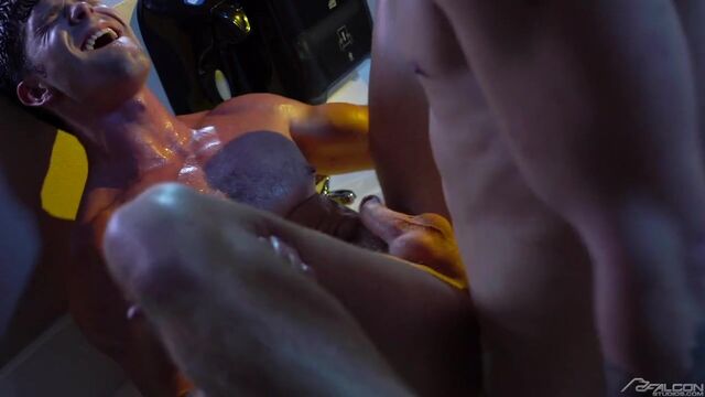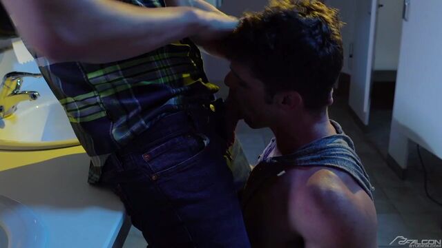 It's night time in Fort Lauderdale. Do you know where your weed is? Devin Franco has to admit to his buddies that he got rolled in the park and it doesn't go well. With nowhere to go and feeling deserted by his buddies, Devin rides his bike to a public restroom to drown his sorrows with big dick. When a car pulls up, he finds JJ Knight jacking off in the driver's seat. Devin can't resist JJ's monster cock and takes a quick taste. The two move the fun into the restroom where Devin continues his expert cock sucking. JJ plows Devin's face with his massive, raging hard-on and fingers his ass until both sweaty studs are ready to fuck. When JJ knows that Devin is ready for his raw, giant dick, he slips it deep into the panting hunk and quickly picks up the pace. As Devin gets slammed with his face in the sink, a random stranger enters and starts jacking off to the show. JJ wants to see the look on Devin's face as he's getting fucked bareback and gets the stud on his back. JJ keeps stretching Devin to the limits until he makes Devin blast a giant load all over himself. JJ takes his cue and dumps his load in Devin's ass before he fucks it deep inside. JJ isn't one to stick around after he's blown his load, and he takes off to let the stranger take over. Just as the random dude gets inside Devin's spent ass, the restroom door opens and suddenly Devin's fate is changed forever.