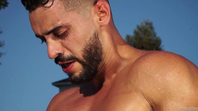 Arad Winwin calls up his favorite boy toy, Brad Payton and entices him with a swim. It's not long before Brad is enticed by the bulge growing in Arad's speedo. Brad blows him then climbs out of the pool so Arad can eat his hot, tight pink hole. The deep-tongue rim job turns into a sweaty fuck. Brad shoots his load then sits up so he can swallow Arad's jizz. Overheated and spent, they both melt back into the water to cool off.