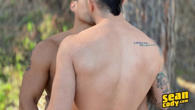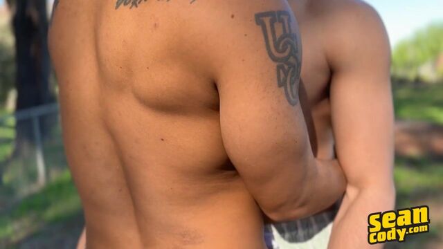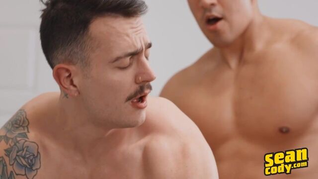 There's lots of laughs and lots of flexing as mustached Guido and muscular Paco take off their shirts in the park and get to know each other. Paco makes his pecs dance before teasing you with a view of his ass, then heads back to the studio where he hungrily swallows Guido's cock. "Yeah, make it wet," the top tells him, and Paco says, "I wanna ride your dick." First, the bottom takes a little mustache ride as Paco tongues his hole, then he sits down on that cock. Paco gets drilled on all fours, then shoots a hot load as Guido pounds him in missionary, and it's time to flip fuck as Guido bends over to take Paco's dick. Paco fucks the mustached hunk in missionary till Guido cums.