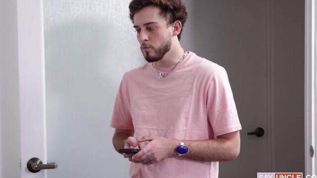 Blake surprises his stepbro Jaycob jerking off to some hot pics of him. Jaycob tells Blake he will post his pictures online unless he sucks his cock. Blake reluctantly accepts, only to end up enjoying an amazing ass-pound from his stepbrother.