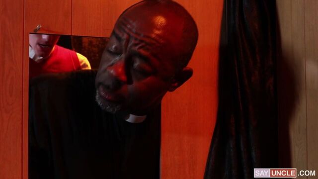 Matthew has been sinning left and right - fucking around with older men and enjoying every second of it. But Father Aaron doesn't seem too worried about Matthew's naughty behavior. To show Matthew there is a path to forgiveness, Father Aaron sucks his cock before he bottoms right there in the confessional booth. To show his dedication to the powers that be, Matthew busts a fat load all over Aarons ass, then sucks Father Aarons cock.