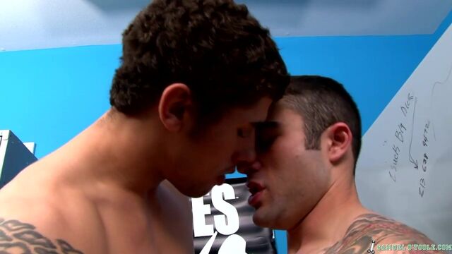 Samuel O'Toole has been coming to this bathroom for some time, jerking off in the stall and waiting for someone else to enter. He's spied on guys from the outside, watched guys pee from the inside, and secretly always had a fantasy to fuck some hot stranger through the glory hole. All this wasn't really his main concern as he sat in the stall, scanning his phone for some spank material and trying to squeeze one out real quick. Jimmy Clay just had to take a piss, but once he got a look at Sammy's massive cock, his thoughts quickly turned to something else. And when the two of them exchange wanting looks through the glory hole, Sammy seizes the opportunity and goes all in, literally, shoving his cock through the hole and waiting for Jimmy's next move. Predictably, Jimmy takes this once in a lifetime opportunity and grabs it by the horns, er, the balls. Before too long, Sammy is balls deep in Jimmy's ass and loving it, and to Jimmy's credit, he's experiencing deep new joys he never thought could be found on the restroom floor. This is one bathroom stall these guys are both gonna have to frequent a lot more often.Enjoy!