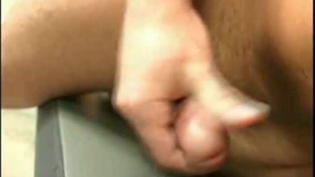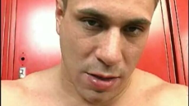 Rocky lost his cherry when he was a freshman to the captain of the varsity cheerleaders, making his rite of manhood the reality that most straight guys just fantasize about. Seeing this handsome, twenty-two-year-old football star not just pull off his clothes in the locker room, but pull on that beautiful fat cock until a huge load covers his abs is a fantasy for most gay guys and one that will become a reality here on CircleJerkBoys.com today! Dark spiky hair, deep-brown eyes, a sexy low voice, and a body packed with muscle, Rocky is like a big bruiser from the frat house with a sexual appetite to match. 'I am all about a girl's ass,' he declares, 'first I lick it, then I stick it.' As for Rocky himself, first licking him, then sticking him sounds like a fine plan to us. But as he loosens his belt, grabs a skin mag and bottle of lube, some ideas of his own, along with something causing the crotch of his jeans to bulge, were also taking shape. And we were more than happy to see what developed next.His arms seem to be battling with the fabric of his sleeves just to contain them. We are glad when he surrenders that shirt and shows off a spectacular chest with strong pecs that dance as he moves some deep ink that stretches across those wide guns and up over his wide shoulders. His whole upper body is a massive expanse of hard-worked muscle with very impressive results that take your breath way. The ladies on the glossy pages have the same effect on Rocky, as he undoes his fly and starts working a tube of flesh that is as thick, meaty, and strong as the rest of him.First working the lube into the hungry muscles on his chest, Rocky then massages the hungriest muscle of all, that fat seven inches that is standing at attention and demanding it receive more of the same. Unlike most straight guys, Rocky has no problem putting his glutes on display and even offers the camera a close-up of that hairy hole in the middle as he bends over and strokes away at his favorite toy. Leaning back against the lockers, he pounds away with a new intensity, yet seems as comfortable as if he has jacked in this setting a million times before. Rocky tunes everything else out but the need to have the best orgasm of his life, and it seems like he is having an out of body experience. The only thing that really leaves his body, of course, is a huge white load that he spills all over his abs. He cannot resist the urge to play with one of the ropes of cum on his stomach. And while playing with your food is generally discouraged, in Rocky's case we are glad to make an exception.