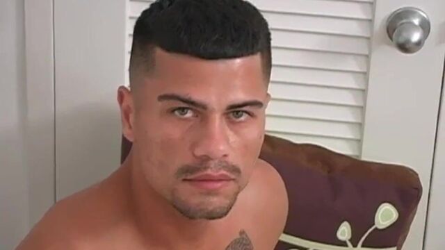 - Description: Green Eyes has just turned thirty, is built like he is twenty, and from the size of the load he shoots, he must have hormones to match. Puerto Rican-born Green Eyes has a solid body that is naturally muscled, naturally smooth, and far sexier than he seemingly has any knowledge of at all. Green Eyes is that classic Latin man of few words, but since he waited three decades to drop trou on camera, we know that the term actions scream louder than words is about to take on a whole new meaning. Though he has been with his girlfriend for going on five years now, he reveals his ultimate fantasy is a no-holes-barred three-way with a couple where he gets head from the man while the lady taps the sucker's ass with a strap on. Though hearing what bones up Green Eyes will leave you blue-balled, what he does next will make sure that the sexual pressure is soon relieved for all parties concerned.The irony of a having an actual cock on his shirt sets just the right tone as soon as that shirt is off and the cock in his pants is soon to follow. There is a look of toughness in his eyes that says yeah, I am doing it...so what, which is his sexually-brooding way of covering up those last minute jitters of wondering if something he has dreamt about doing for so long will live up to the fantasy he has played out in his head a million times before. A little bit East L.A., combined with a touch of prison yard giving him a dangerous edge, Green Eyes is like the guy you are scared of if you met him in a dark alley, but at the same time you know he is just the kind of man you want to man-handle you in a dark bedroom. But as he takes off his shorts, pulls the waistband of his boxers down over his butt, and gives that creamy-white cheek a loud, defiant slap, we begin to wonder if handling for Mr. Green Eyes might be a bit more bi-directional that he has led us to believe. As for his handle in the front, that is definitely responding to rear stimulation as well and is about to take center stage.His cock is sticking out between his legs, and he is grinding away on the mattress. Those white globes of his ass, in sharp contrast to the deep tan of his back, are undulating like both the machinery of pleasure, as well as a long-ignored target for future, secretly-desired maneuvers. The look on his face as he presses back and forth with such need and passion is as much I'm gonna fuck you 'till you can't walk as it is a plea to do the same thing to him. With the briefest rub of his hole from his fingertips, his cock is rock hard and beginning to drip. In fact, the more he touches his ass, the more turned on his gets. And when he his jacking with one hand and showing his hole with the other, that soon opens up the flood gates. Quickly laying on his back, every muscle from head to toe seems flexed to help his balls in carrying out their mission to empty their cargo. And that is exactly what happens next, all over his stomach, the blanket underneath him and on the top of the bed beside him.