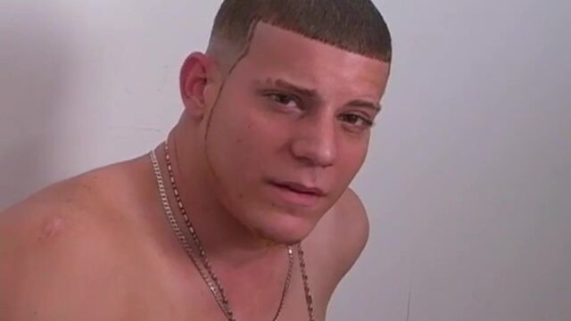 The combination of the dark hair, deep-brown eyes, and light skin, along with a sexy accent that we later learn is as thick as that beautiful, uncut seven inches of joy between his legs, make it easy to guess exactly where Cuba, the latest Latin lover to join the CircleJerkBoys.com roster, was born. Bling in his ear, ink on his arms, and his country's flag hanging on a chain around his neck, Cuba also has one of the most charming ear to ear grins we have seen in a long time. Never having jacked off in front of a guy before, much less on camera, Cuba has an irresistibly charming bit of first time jitters, blushing as he talks about how much he likes to look down and see a girl's ass as he is fucking her doggie style. From the muscles spilling out of his tank top, we know that what is underneath will be hotter than anything we have seen yet from this guy who is flat-out sexy as hell just sitting there. He will not be resting there for long, and when you see him start to move and strip off his clothes to reveal the masterpiece below, your cock will not be resting for long either. Flexing his arm and flashing those baseball-sized guns, Cuba teases us, lifting up the bottom of his shirt just long enough to see the top of the whittled obliques, then letting it fall just as quickly. Hoisting it up again, this time in addition to his flat abs, we see just the hint of the trail under his navel before he finally sheds his shirt for good. Picking up speed, he undoes his belt, then darts his hand inside his fly. We are not sure if he is working up his cock or working up his nerve to whip that bad boy out, but as he spreads his legs wide and sprawls back on the couch while continuing to play hide-n-seek inside his boxers, we learn the answer is yes to both. Kicking off his shorts, Cuba stands with both hands over the goods, then, finally, flings his arms behind his back. What is now in front is seven inches of heavy meat that will make your mouth water. Where there is water there is fire, and in this case, at the base of his cock is a flame-colored bush. Running right from those red pubes is a thick vein that goes all the way down a thick heavy shaft to the edge of a heavy crown of skin that covers the very tip of a cock that is now in the same state as yours...throbbing.He tells us about how much he loves to see the curves of his girl's butt as he is taking her from behind, and after watching him as humps away on the couch, we understand just how fucking hot that view of seeing the curves of tight, white, muscled cheeks in motion can be. As he rolls over, totally oblivious to how hot the site of the red pubes coming from that ass up over his balls is, his cock is now so hard that the skin has totally snapped back. The fat, helmet-shaped head is prominently in view, and the cum tube on the underside of his shaft looks fat enough to move a year's supply of oil, much less a day's supply of cum. Along with his cock, his comfort level under the lights and camera is growing as well. Looking right into the lens now, even giving a wink and flashing a smile now and then, his cock has grown into a two-fisted tower. Opening a few porn mags to his favorite centerfolds, Cuba gets right in the middle of the floor and places the black pillow right under his throbbing meat, opens the flood gates of his balls, and unleashes a white flood of jizz that not just covers the pillow, but shoots past it all together. He says he will come back for an encore, but after a load like that, it is going to take him a while to recharge!