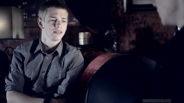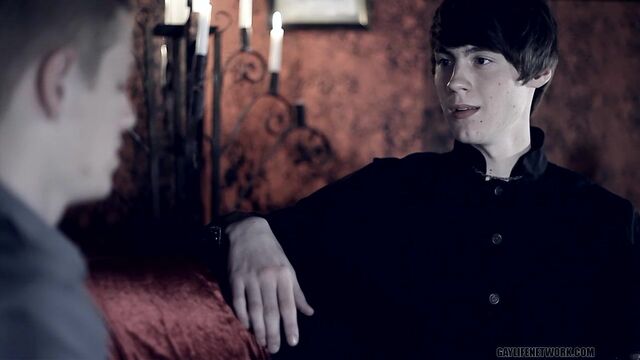 We go back in time to Elijah White, a new vampire to our story who lectures his mortal boy toy about the rules and expectations of being his little pet. To prove his loyalty, Kyle is made to drink the blood of another mortal pet, Kain Lanning who's caged up in the room for the occasional feeding. After some discipline, Elijah makes sure his mortal boy toy offers up a hard cock for the taking. After some cock sucking, Kyle fucks Elijah good and hard, the way his master likes it.