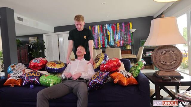 Brody arrives home early and discovers his stepson Zacc setting up a “Father’s Day” surprise. Still in his business suit, Brody explains to the boy that although he appreciates the decorations, the real gift is having him home for the summer break. Plus, he is all tense from work, so he desperately needs to release some tension. Zacc, eager to please his stepdaddy, rubs his back, slowly making his way to Brody’s cock to swallow it and go for a wild ride.