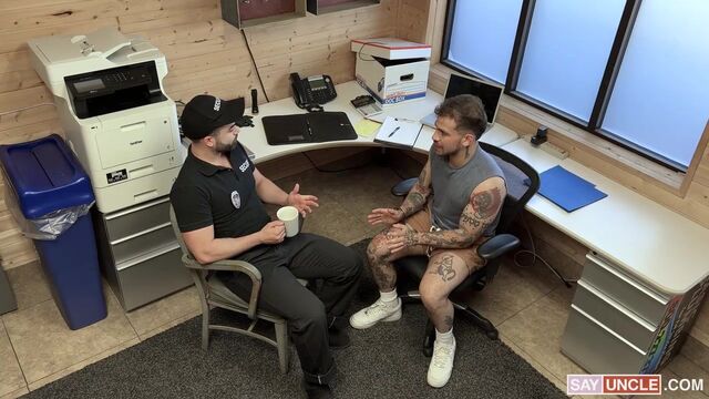 Keith really fucked things up this time as Officer Jaxon caught him stealing a laptop from the mall. The perp has an awful relationship with his stepdad and took the device to give it to him as a gift for Father’s Day, but now he’s in trouble and Jaxon called Rick, the boy’s stepdad, the one thing Keith feared the most. To his surprise, Rick tells the officer that his stepson is a good boy and tries to find a different way to sort out this hot mess. Officer Jaxon likes the idea and doesn’t mind getting a taste of hunky Keith before letting him go. Jaxon and Rick tag team to fuck Keith.
