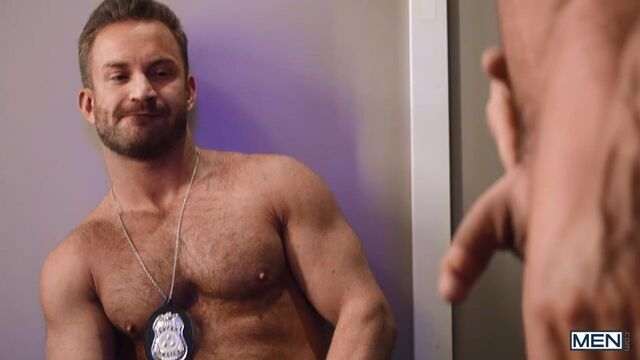 - Description: After a long day on patrol, cops Bruce Jones and Greg Dixxon strip off in the locker room. Bruce can't get enough of his partner's musk, and when Greg comes back from the shower, he catches him sniffing his underwear! Greg cuffs Bruce to the bench and makes him lick and smell his pits, then sucks and rims the bottom. Bruce begs for the top's cock and gets it doggystyle, then sucks that big nightstick. Greg pounds the bottom against the lockers, and Bruce rides him and takes a hard drilling in missionary till he orgasms. The top cums all over him!