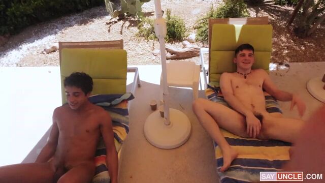 Ryan and his stepson Harrison just moved into the neighborhood, so they go to the next-door house to say hi. At their neighbor’s pool, Gabe and his stepdad Magic Mike are enjoying Father’s Day by the sun. Ryan and Harrison introduce themselves and are quickly invited to the party, with stepdads’ hitting it off with each other’s stepsons, so the idea of having twinks by the pool soon comes up. Thus, a new way of celebrating Father’s Day is born: the twink trade tradition. May the pool fuckfest begin!