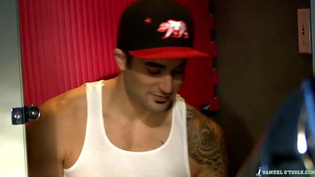 Fitness hottie Samuel O'Toole looks sexy on the set - On The Set