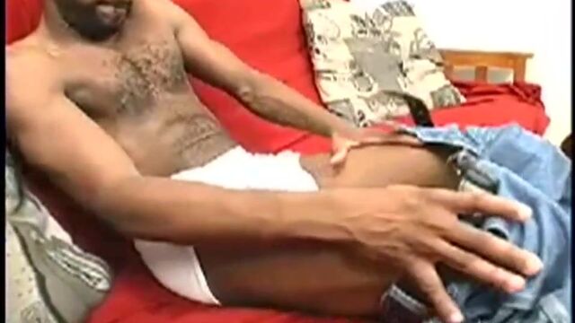 Next to the spot that asks for cock size on his application, Ty put down nine inches. That is not the first time we have seen that answer to that question here at ExtraBigDicks.com, but it is the first time a model wrote down 'nine' and was referring to length when it is totally soft. Even if Ty was simply what is known as a 'show-er,' he clearly had something worthy of being put on display, but even better for us, Ty turned out to be a 'grow-er,' and nine inches was, in every sense of the phrase, 'just the start of something big.' Seems like a crime against huge cock lovers everywhere that Ty did not dip his pole for the first time until he was 21. Despite having been married for a while, in the years since then, Ty has learned to be an equal opportunity fucker and fully appreciate the charms of both sexes. Today, Ty is all ours, and that suits us just fine. Even though his eleven fully erect inches offer plenty to go around, with a cock this big, we want it all for ourselves.His muscle shirt lives up to its name, showing off the sexy contours of his well-worked arms. And his jeans cling to his lower half like wrapping paper does on that big gift that has been calling your name under the tree since Thanksgiving. He lifts his shirt to reveal granite solid abs with something not often seen on African-American's, copious swirls of dark curls that become more dense until they fan out across his well-etched pecs. As Ty works his pants down, the outline of his cock inside his white shorts makes it look like he is smuggling a whole cucumber or zucchini in his underwear - and we have no doubt the actual cause of that obscenely large outline will prove to be just as tasty. Rubbing that massive heap, like a rightfully proud papa caressing his baby, as he tugs on the waistband, we know we are about to get a delivery. And oh yes...it's a boy!Laying back across his stomach, that dark cock looks like a just-beached whale flopping on the beach with the tip of that pulsating head closer to his pecs than his navel. Ty's baritone moans are almost primal as he stands and begins to stroke with an underhand grip. Though due to the sheer girth of his shaft, his fingers can barely make it all the way around. When he lets that mighty cock swing in the air, the extraordinary distance between that thick, dark bush and the even thicker pink cockhead showcases just how oversized his equipment actually is. The look on his face resonates with the crest of pleasure as the tightness of his balls, in combination with double-time stroking, coax a huge five splat load to land all over those hairy, hard abs.