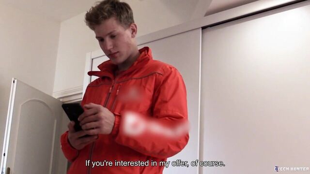 - Description: I was getting hungry but Lukas was still on the way to my flat. I decided to risk it and order some chicken hoping he would get there by then. Well, I was also a bit horny so I prepared a large banknote just in case the courier was cute. This trick worked before so why not try it again? The delivery guy was quite handsome and luckily didn't have change. The guy was only 19 years old so 5 000 Crowns was a lot of money for him. When I told him to keep it all in exchange for taking his clothes off, he didn't hesitate. I laid him down on my bed and admired his naked body. To be honest, Michal was quite open-minded and knew how to enjoy himself. Not to mention he earned his monthly salary in one hour. Too bad Lukas didn't make it in time. When he saw the video, he was so pissed off.